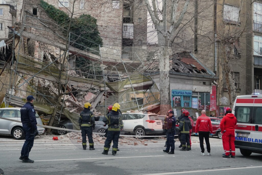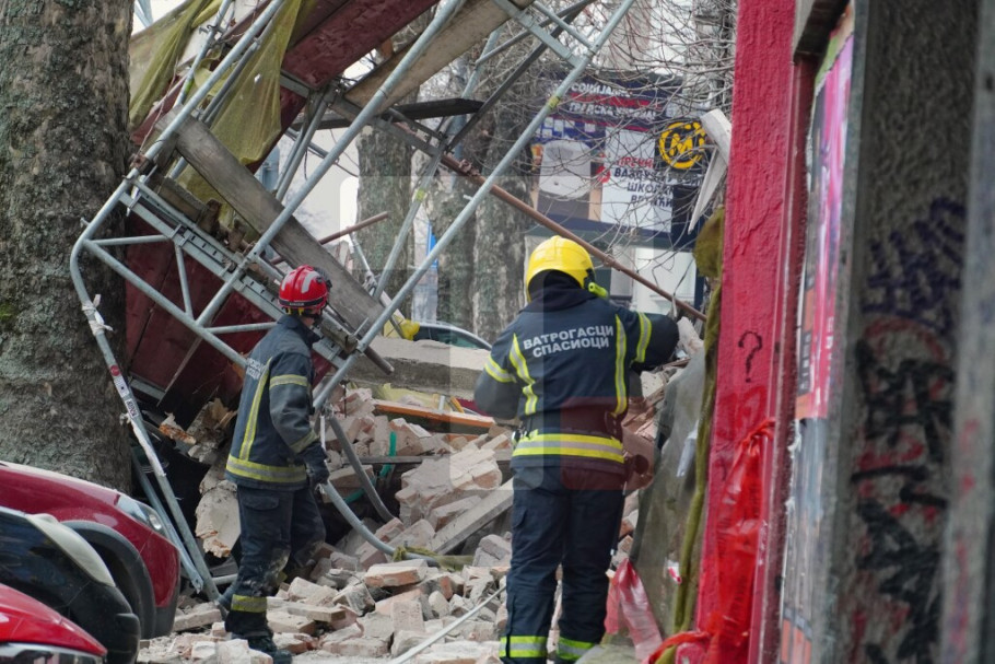 U Ulici Džordža Vašingtona pao deo napuštene kuće i deo skele, nema povređenih; u toku raščišćavanje