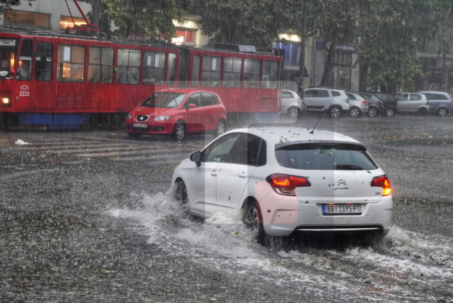 Više ulica na Novom Beogradu je bilo potpljeno velikom količinom vode koja je pala u kratkom vremenu, zbog čega su se neki automobili zaglavili.