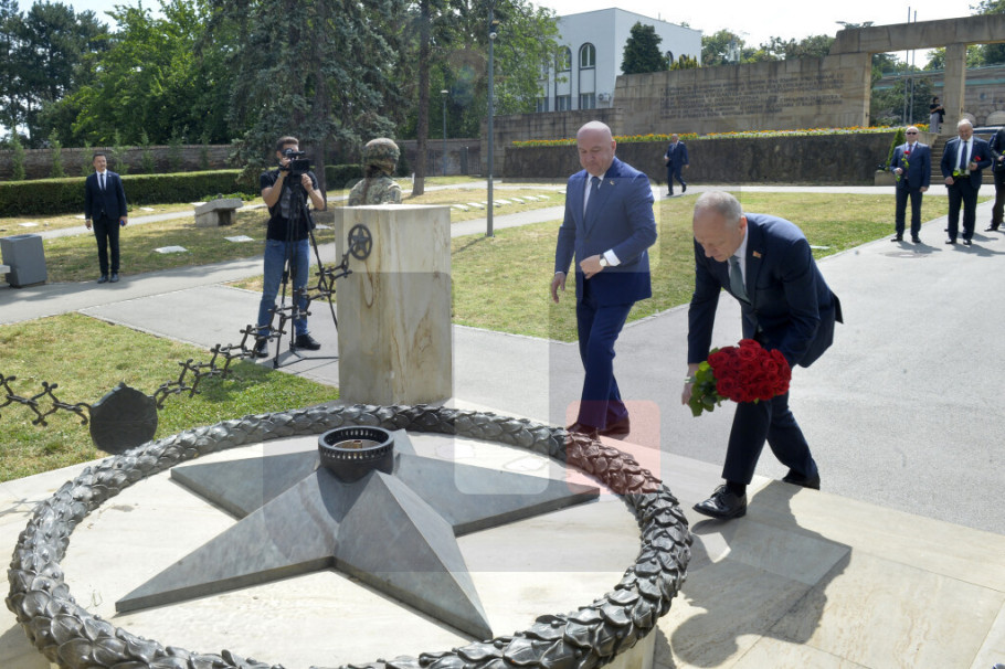 U okviru zvanične posete delegacije Belorusije, Popović i Karpovič su ranije u toku dana na groblju oslobodilaca Beograda položili vence palim borcima Narodnooslobodilačke vojske Jugoslavije i Crvene armije - stradalim u borbama za oslobođenje Beograda 1944. godine.