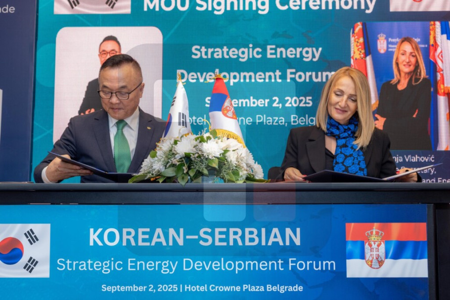 Na Korejsko-srpskom forumu za strateški energetski razvoj danas su državni sekretar u Ministarstvu rudarstva i energetike Sonja Vlahović i predsednik i generalni direktor južnokorejske kompanije "Korea hidro end nuklear Pauer(KHNP)" Džuhu Vang (JoohoWhang) potpisali dva memoranduma o razumevanju o saradnji u oblasti nuklearne energije i vodonika.