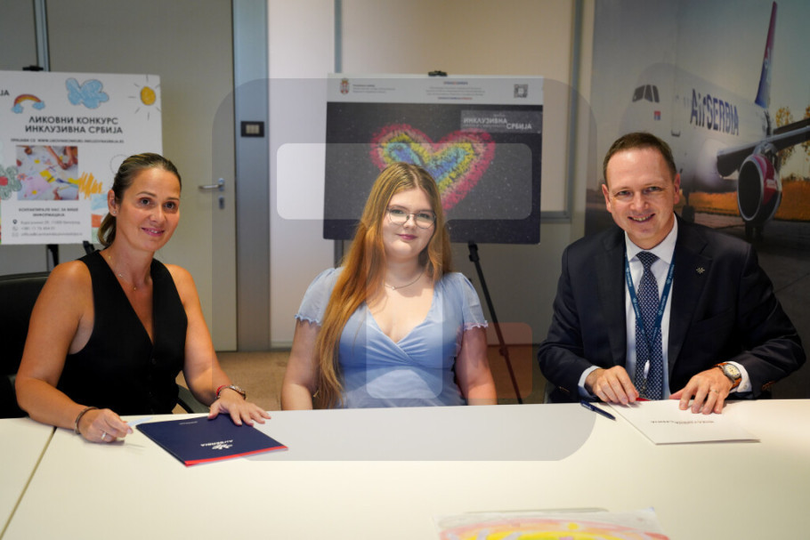 Ugovor su potpisali generalni direktor Er Srbije Jirži Marek i predsednica Upravnog odbora Centra inkluzivna Srbija Miroslava Damjanović.