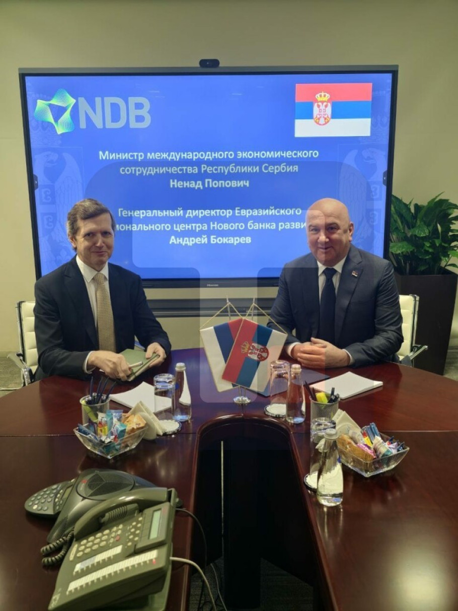 BEOGRAD - Ministar zadužen za međunarodnu ekonomsku saradnju i oblast društvenog položaja crkve u zemlji i inostranstvu Nenad Popović i generalni direktor Evroazijskog regionalnog centra Nove razvojne banke BRIKS-a (NRB) Andrej Bokarev razgovarali su o mogućnosti pridruživanja Srbije Novoj razvojnoj banci u 2026. godini.