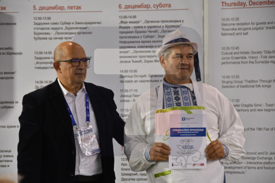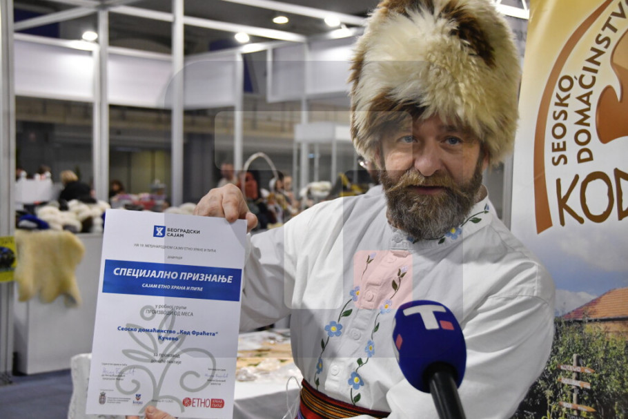 Izlagač Slađan Petrović Fraće iz Kučeva vodi seosko domaćinstvo ''Kod Fraćeta'', a na ovogodišnjem sajmu dobio je priznanje i izjavio da na njihovom štandu posetioci mogu da probaju tradicionalnu hranu i piće.