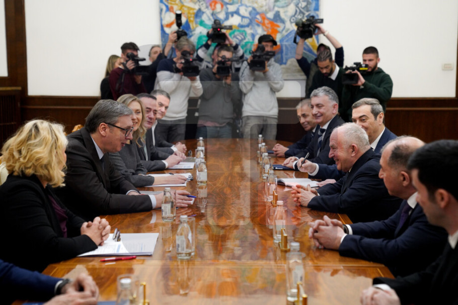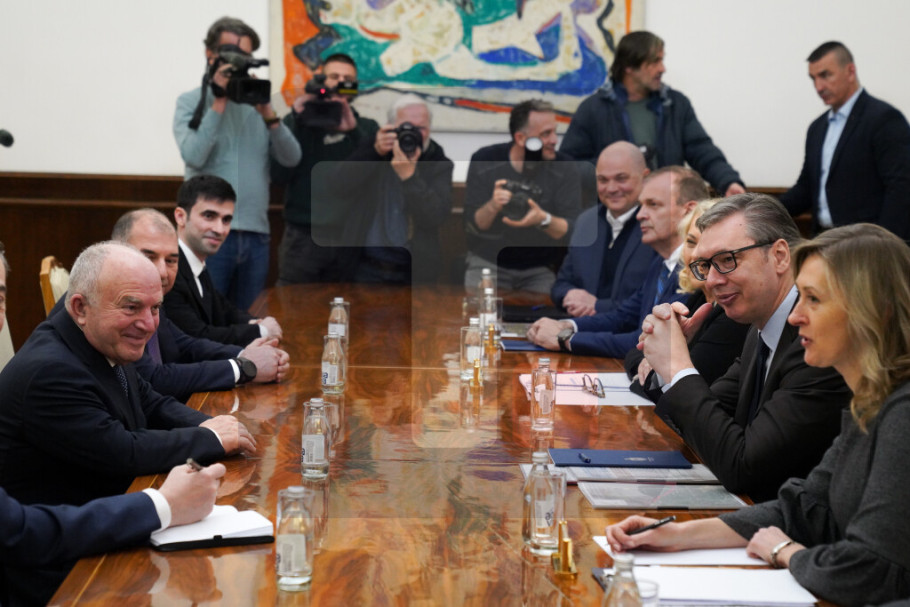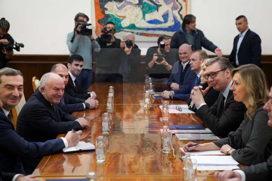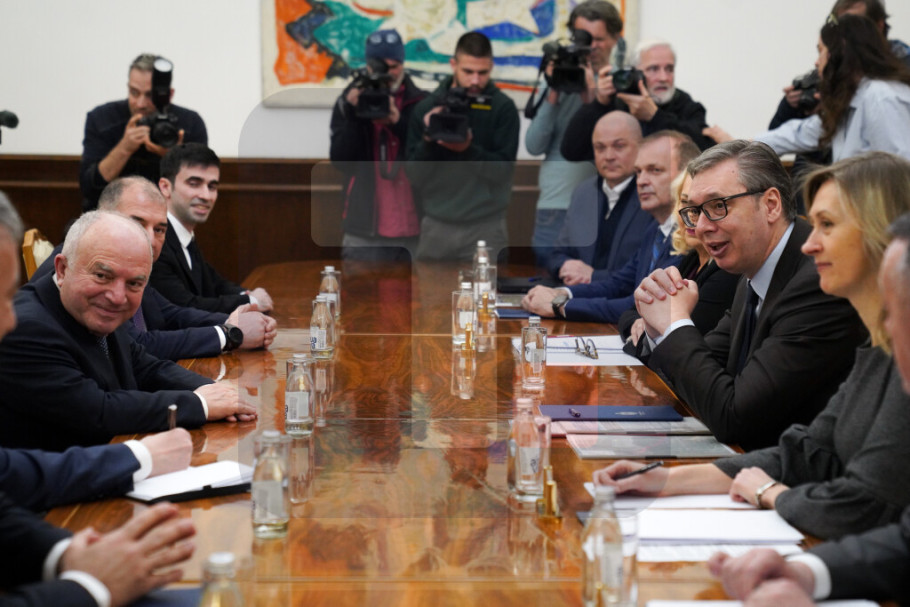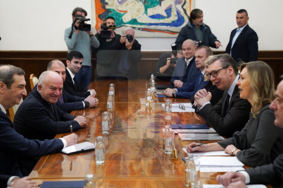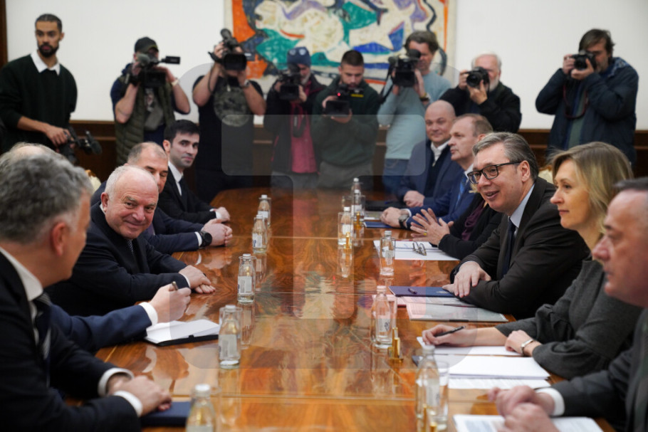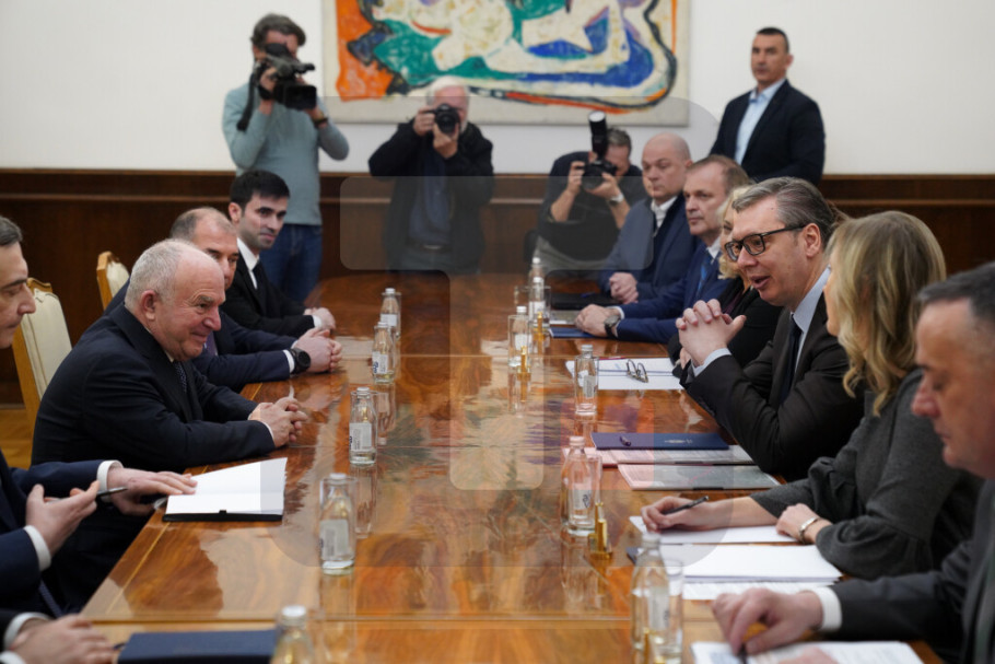 Predsednik Vučić sastao se danas, u Predsedništvu, sa predstavnicima kompanije Azvirt, sa kojom će biti potpisan komercijalni ugovor o projektovanju i izvođenju radova na izgradnji brze saobraćajnice granični prelaz Bački breg-Sombor-Kula-Vrbas-Srbobran.