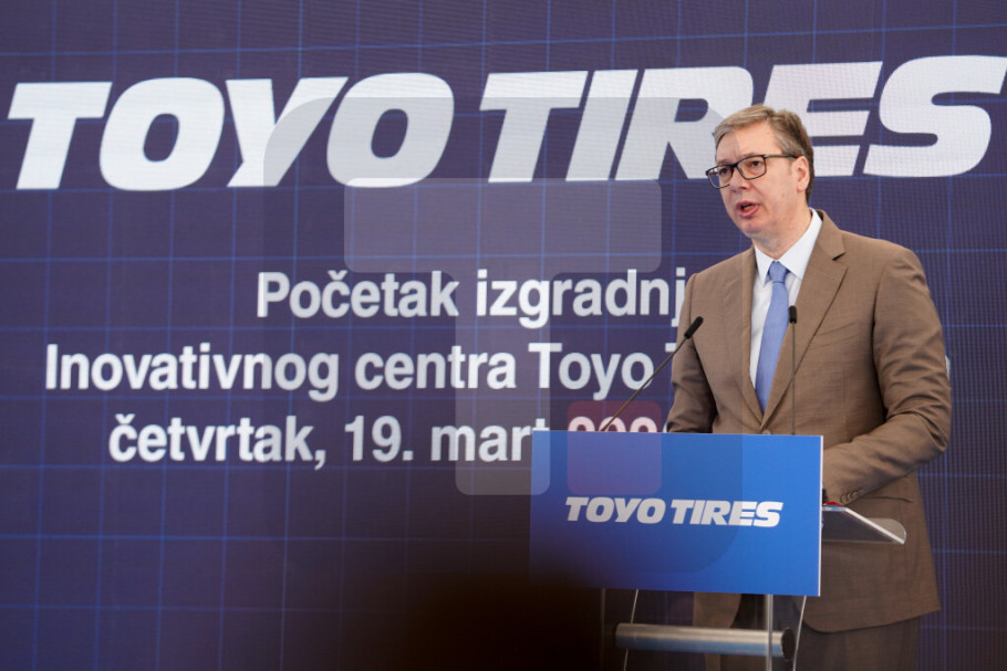 INĐIJA - Predsednik Aleksandar Vučić izjavio je na ceremoniji obeležavanja početka radova na izgradnji Centra za inovacije u Srbiji japanskog proizvođača automobilskih guma Tojo Tajer (Toyo Tire) u Inđiji da se danas postavlja kamen temeljac i za zajedničku viziju budućnosti Srbije i Japana, kao i da ta investicija dokazuje da je Srbija strateški centar iz kojeg mogu da se osvajaju tržišta različitih delova sveta.