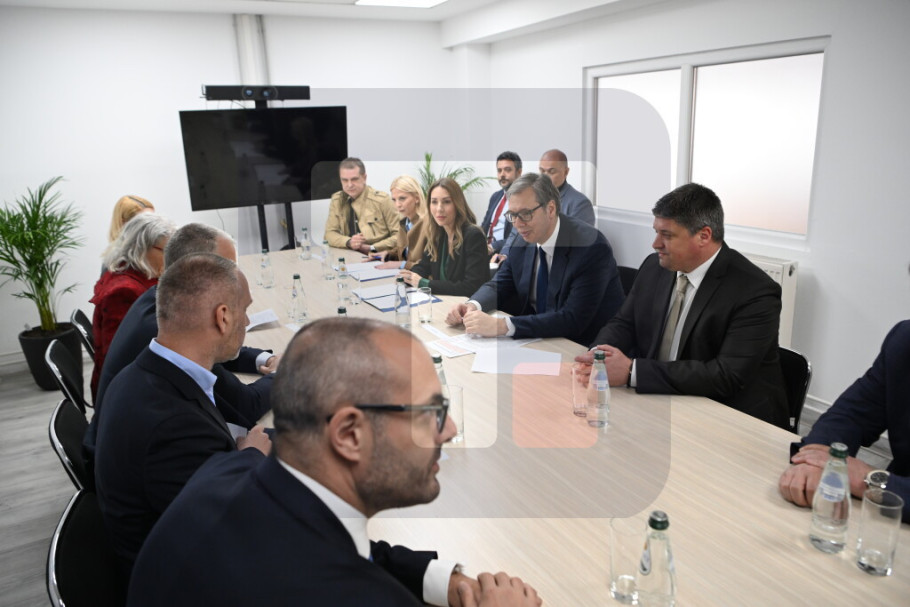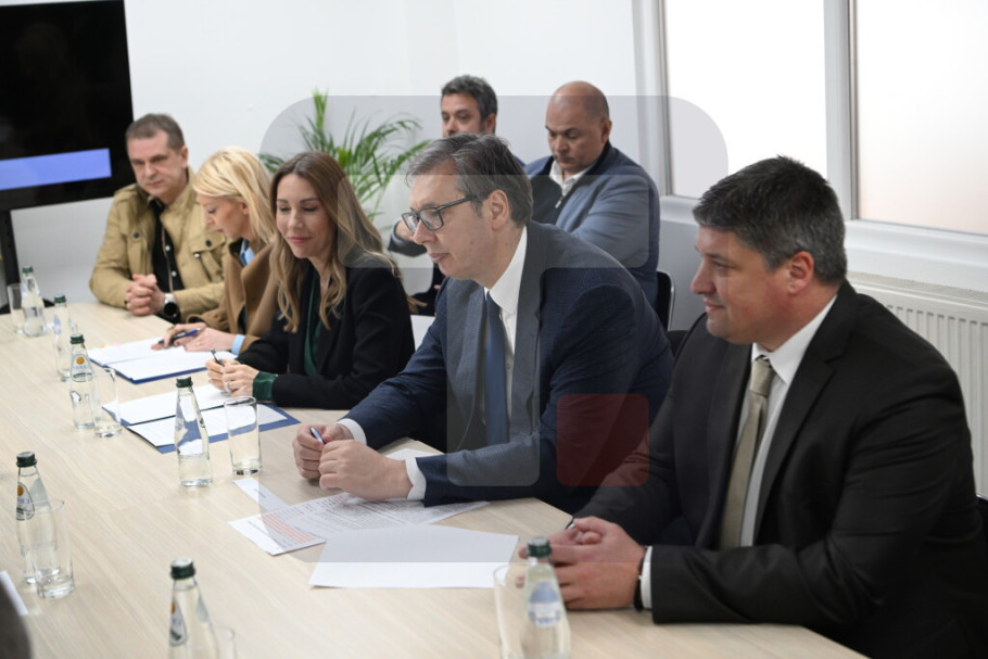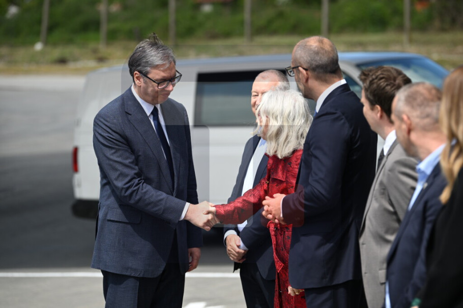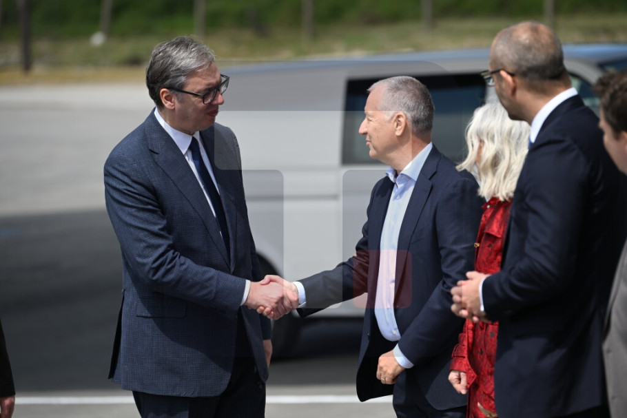 Predsednika Vučića dočekali su u krugu fabrike vlasnik Srpske fabrike stakla Igor Lah i generalni direktor Vaider Grupe Kristijan Froba, nakon čega su započeli sastanak.