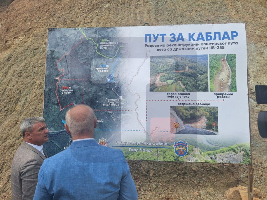 ČAČAK - Ministar građevinarstva, saobraćaja i infrastrukture Goran Vesić obišao je danas radove na rekonstrukciji puta za Kablar, od Ovčar Banje, koji se izvode u okviru projekta integralnog razvoja Ovčarsko-kablarske klisure.