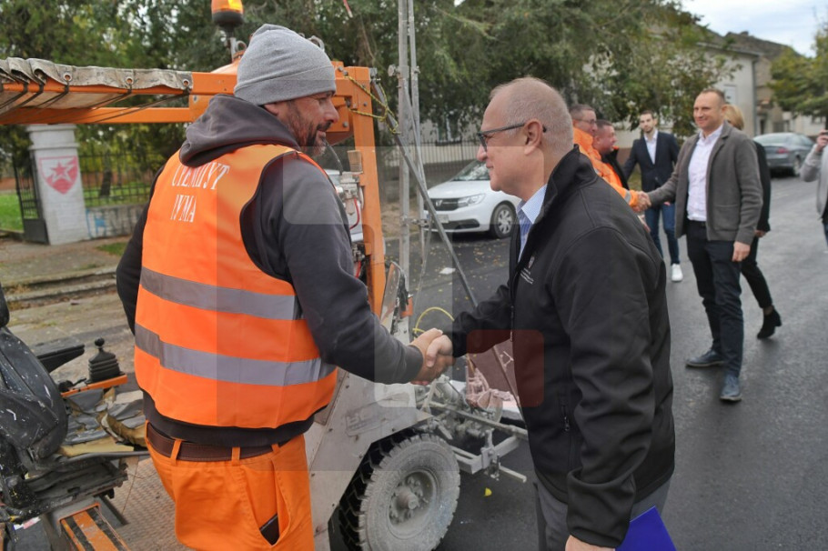 Vesić je u razgovoru sa radnicima zahvalio na njhovom angažovanju, jer će put Laćarak - Čalma biti završen za oko 15 dana, nekoliko nedelja pre roka.