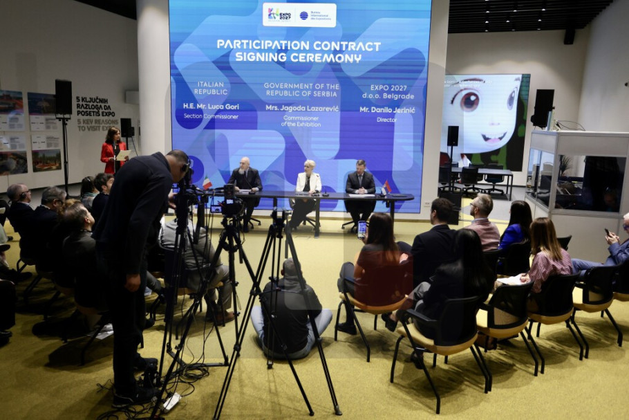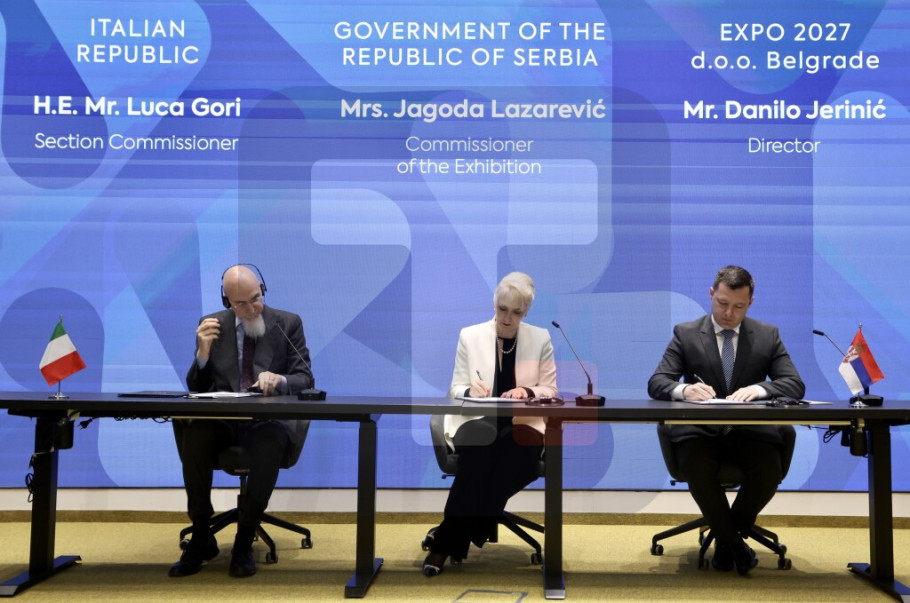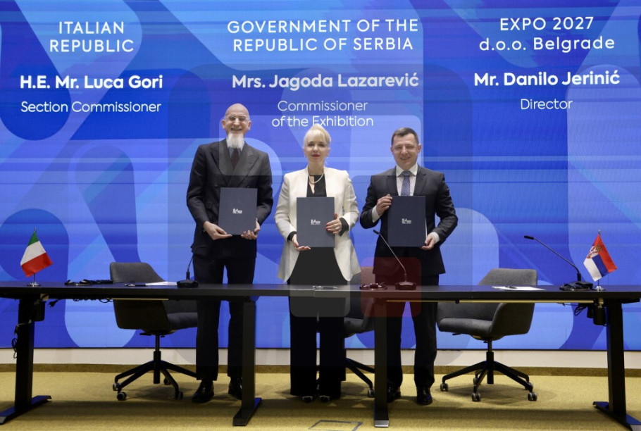 BELGRADE - Serbia's EXPO 2027 Commissioner Jagoda Lazarevic, who is also minister of internal and external trade, EXPO 2027 Director Danilo Jerinic and Italy's EXPO 2027 Commissioner Luca Gori signed on Monday in Belgrade a contract on Italy's participation in the specialised expo.