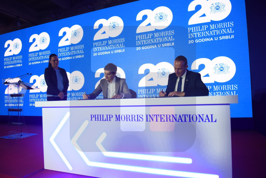 Brnabic, who signed the document on behalf of her government, congratulated Philip Morris on 20 years of successful operations in Serbia and said the anniversary was a new beginning for the company in the country.