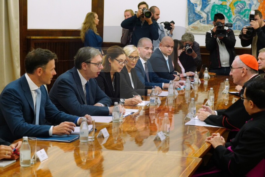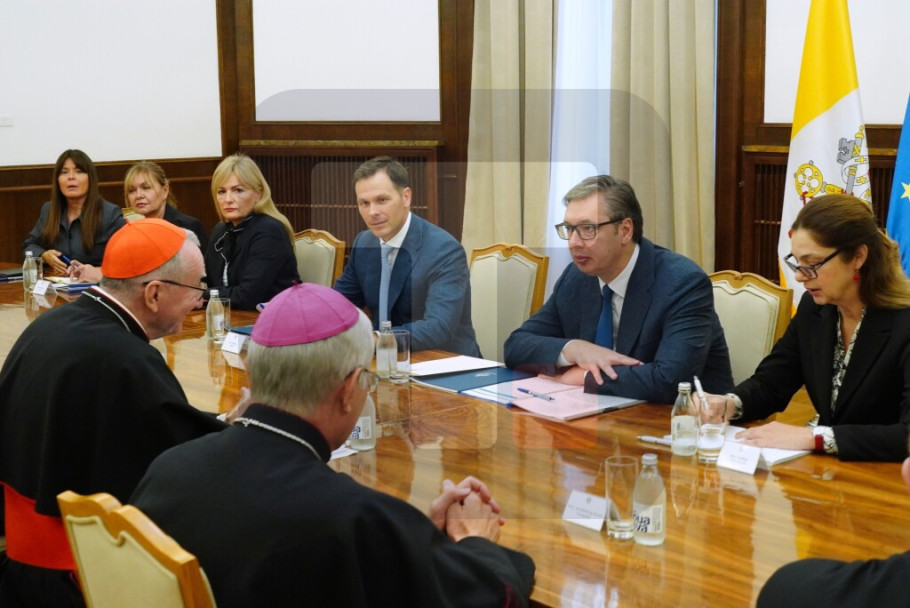 BELGRADE - Serbian President Aleksandar Vucic met with the State Secretary of the Holy See Pietro Parolin in Belgrade on Wednesday to discuss holding regular political dialogue at all levels as well as protection and renovation of Serbian religious and cultural heritage in the autonomous province of Kosovo-Metohija.