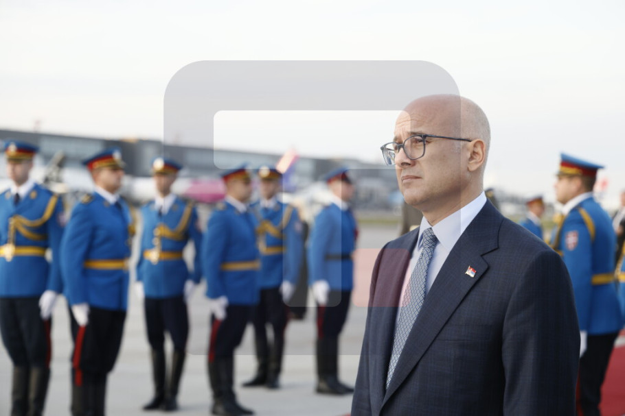 Serbian PM Milos Vucevic welcomed him at Belgrade's Nikola Tesla Airport.