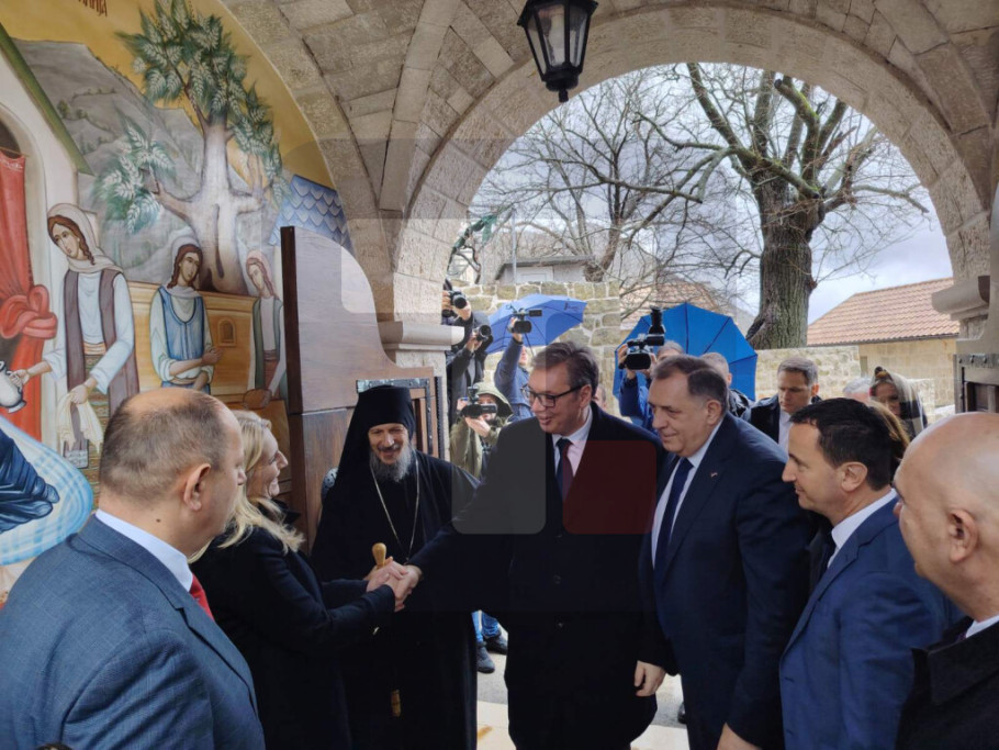 Vucic was greeted by Metropolitan of Zahumlje and Herzegovina and the Littoral Dimitrije, the Serb member of the Bosnia and Herzegovina Presidency Zeljka Cvijanovic, Alliance of Independent Social Democrats leader Milorad Dodik and Trebinje Mayor Mirko Curic.