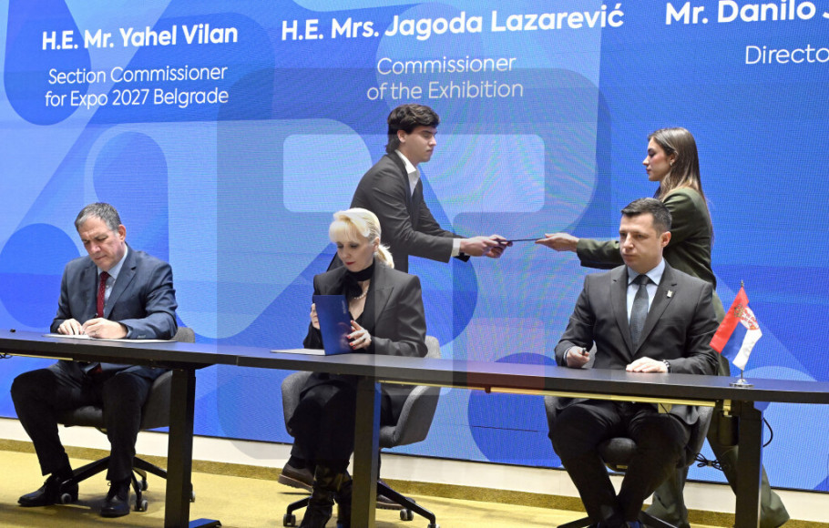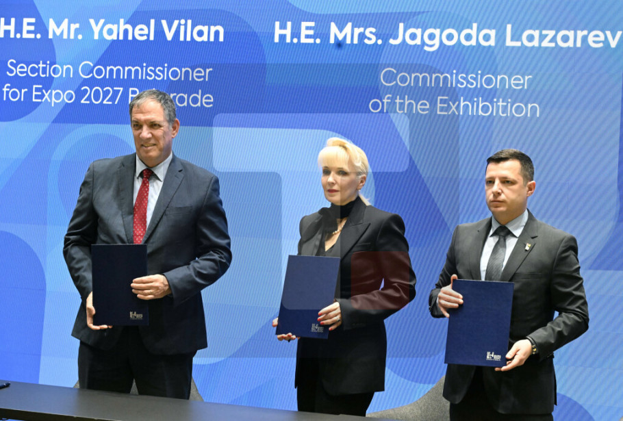 BELGRADE - Serbia's EXPO 2027 Commissioner Jagoda Lazarevic, who is also minister of internal and external trade, EXPO 2027 Director Danilo Jerinic and Israeli EXPO 2027 Commissioner Yahel Vilan signed on Thursday in Belgrade a contract on Israel's participation in the specialised expo.