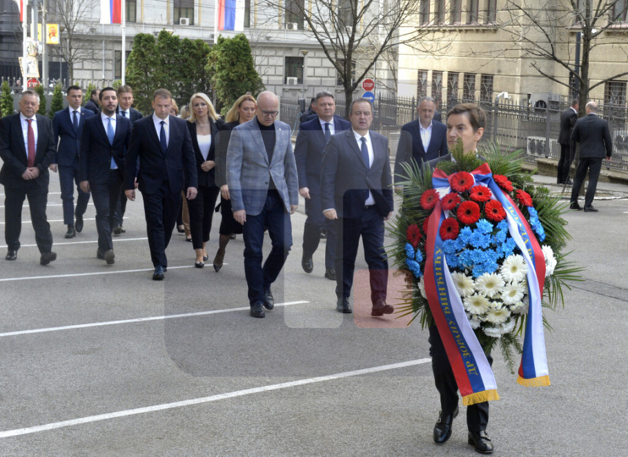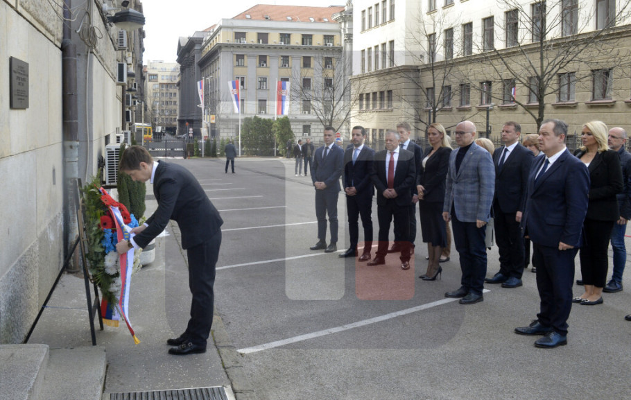 The wreath-laying ceremony was attended by Ivica Dacic, Goran Vesic, Jelena Begovic, Mihailo Jovanovic, Danica Grujicic, Jelena Tanaskovic, Tomislav Momirovic, Milos Vucevic, Aleksandar Martinovic, Slavica Djukic Dejanovic, Tomislav Zigmanov and other ministers.