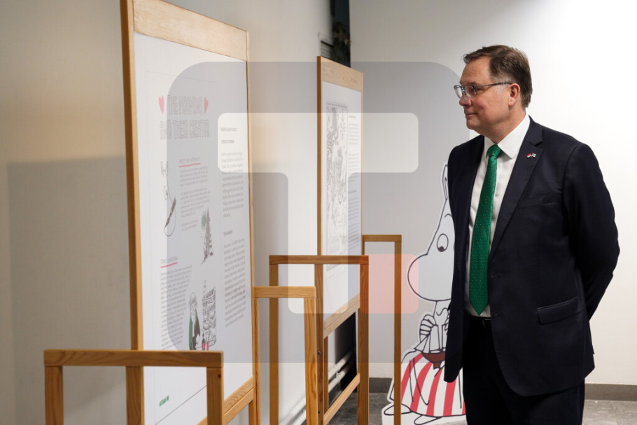 BEOGRAD - Ambasador Finske Niklas Lindkvist otvorio je danas izložbu "80 godina priča o Muminima", posvećenu likovima spisateljice i ilustratorke Tuve Janson, u Atrijumu galerije Biblioteke grada Beograda (BGB).
