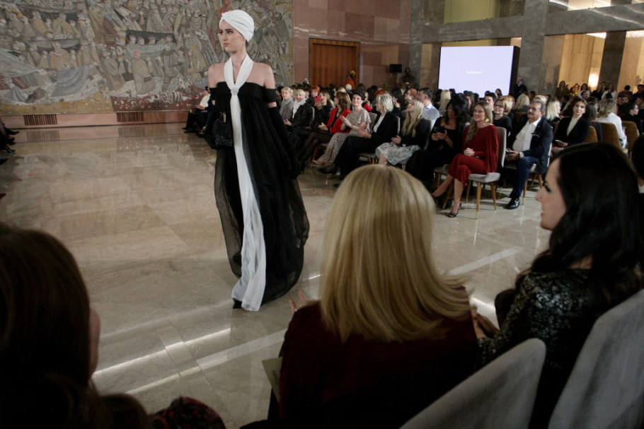 Retrojugoslovenski šik na improvizovanoj pisti u Palati Srbije, između ostalih, oživele su prvakinja Narodnog pozorišta Nada Šargin, glumice Aleksandra Janković, Marija Bergman, Jelena Ćuruvija...