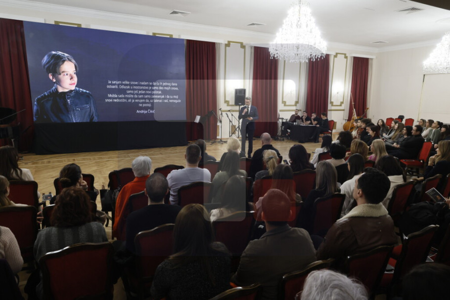 BEOGRAD - Veče muzičkih, filmskih i likovnih ostvarenja mladih umetnika "Voljeni nikad ne umiru", u spomen na mladog pijanistu Andriju Čikića (2009-2023), održano je večeras u ispunjenoj Svečanoj sali Doma Vojske Srbije.