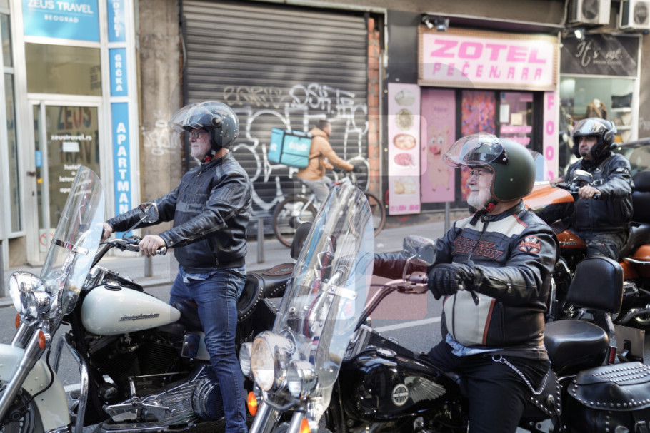 Rođena braća Dragi i Žika Jelić osmislili su originalan način dolaska na ovu svečanost, pa su stigli na motociklima u pratnji družine bajkera i na kratko zauzeli dobar deo Nušićeve ulice.