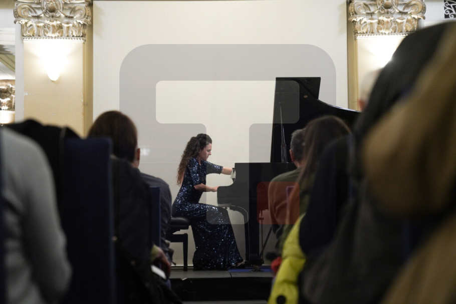 Program koncerta pijanistkinja je večeras poćela sa izraelskim kompozitorom i pijanistom Fazilom Sajom i njegovim delom "Black Earth (Kara Toprak), Op. 8".