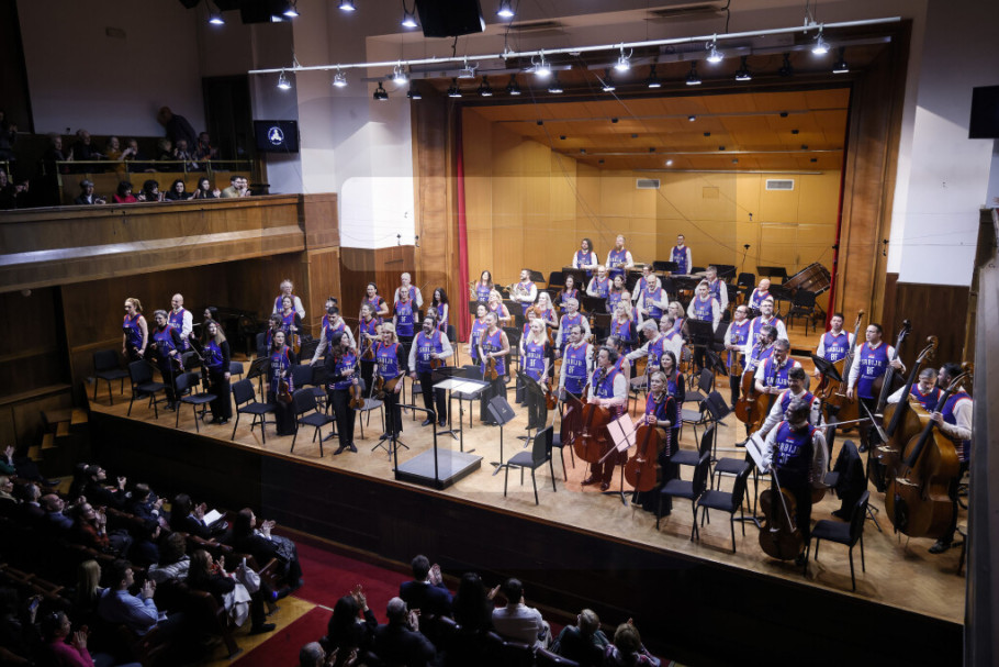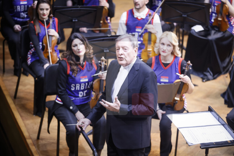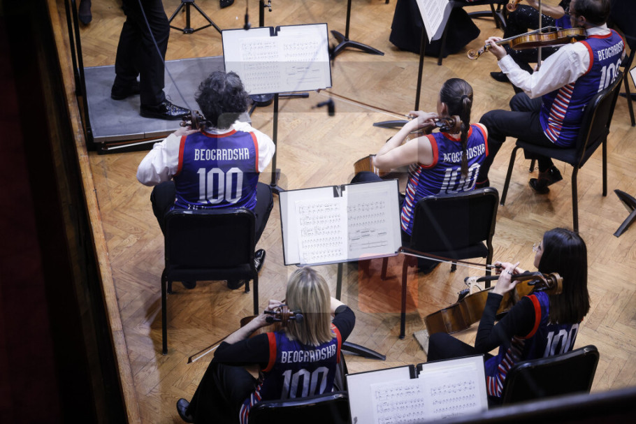 BEOGRAD - Muzičari Beogradske filharmonije sinoć su započeli koncert svirajući u specijalnim dresovima kojim su poručili da su muzička reprezentacija Srbije, saopštili su iz Beogradske filharmonije.