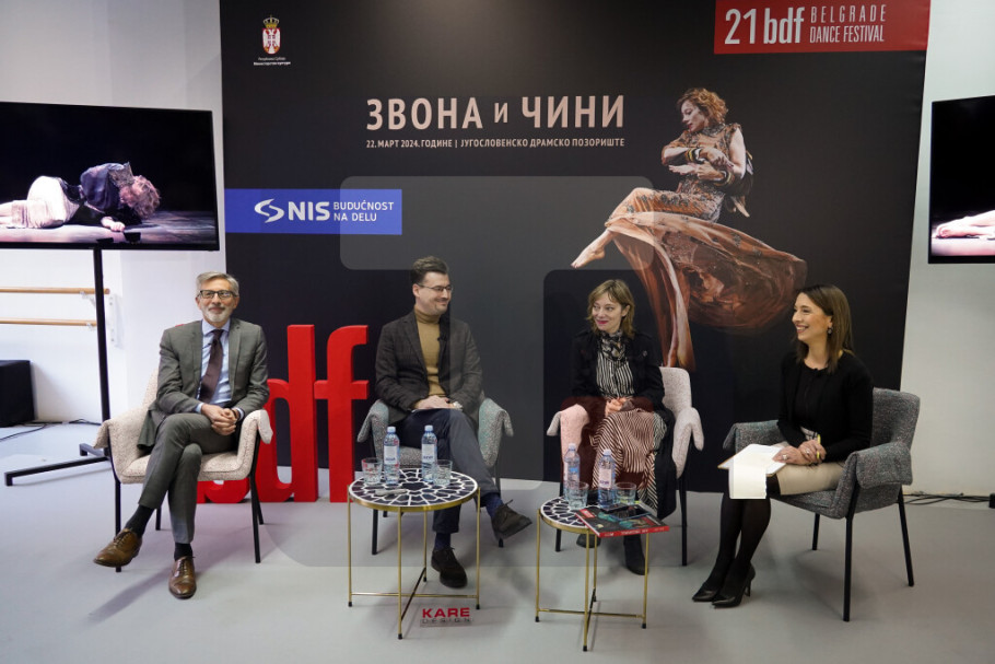 BEOGRAD – Koreografkinja Aurelija Čaplin Tijere, unuka slavnog Čarlija Čaplina, predstavila je danas u Nacionalnoj fondaciji za igru svoju predstavu "Zvona i čini" koja je programu predstojećeg Beogradskog festivala igre 22. marta 2024. godine u Jugoslovenskom dramskom pozorištu.