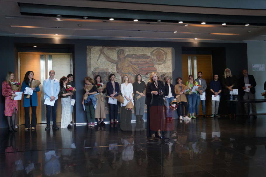 Vučković Manojlović je podsetila na umetnike koji su nas napustili u proteklih godinu dana - Jagoša Markovića (1966-2023), Žarka Lauševića (1960-2023), Gojka Šantića (1946-2024), Zorana Erića (1950-2024) i Mirsada Tuku (1965-2023).