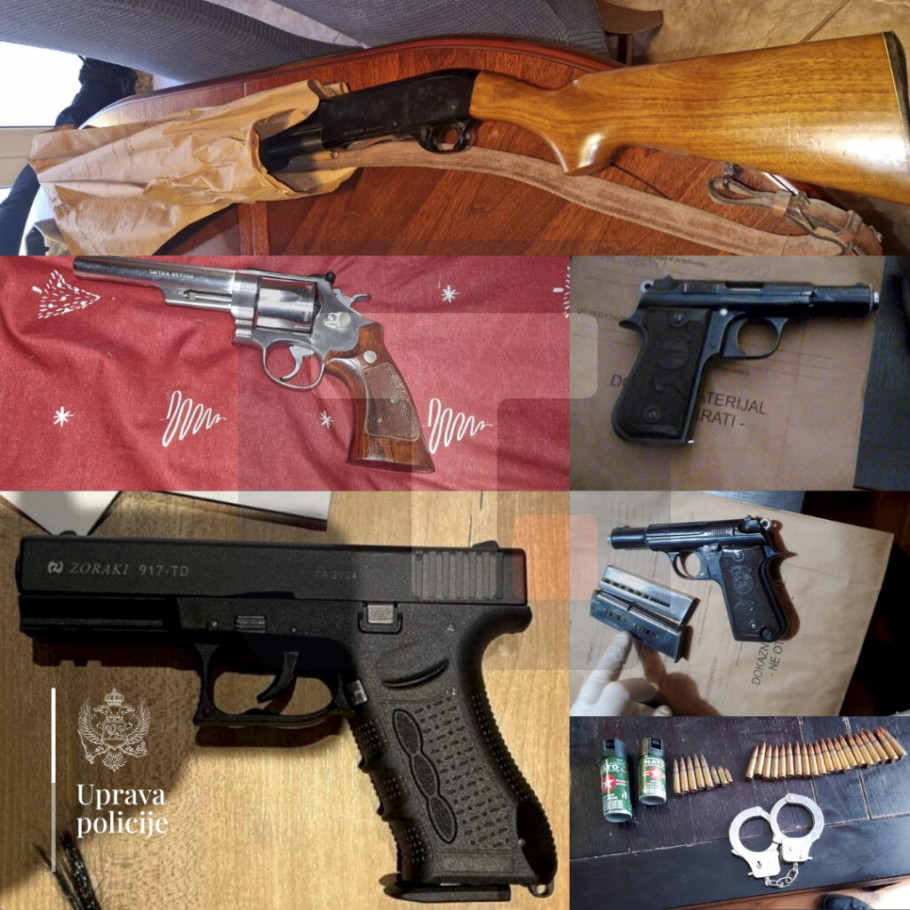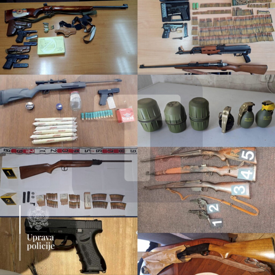 U saopštenju se navodi da su, u okviru pojačanih aktivnosti usmerenih na suzbijanje zloupotrebe oružja u ilegalnom posedu, kao i na sprečavanje vršenja krivičnih dela, službenici Uprave policije sproveli danas pretrese na više lokacija širom Crne Gore i oduzeli 20 komada oružja, šest štapina i 520 komada municije.