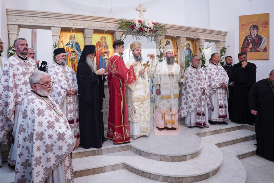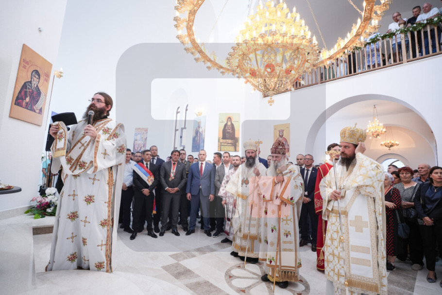 "Zato danas blagodarimo prvenstveno Bogu koji je blagoslovio da i ovaj dan daruje, da se njemu radujemo i veselimo, jer je za nas ovo veliki dan, jer smo novi hram osveštali u kojem će se prinositi tajna nad tajnama, ljubav nad ljubavlju, nada nad nadama, vera nad verom", istakao je episkop Sergije i zahvalio na pomoći Vladi Srbije da se hram završi.