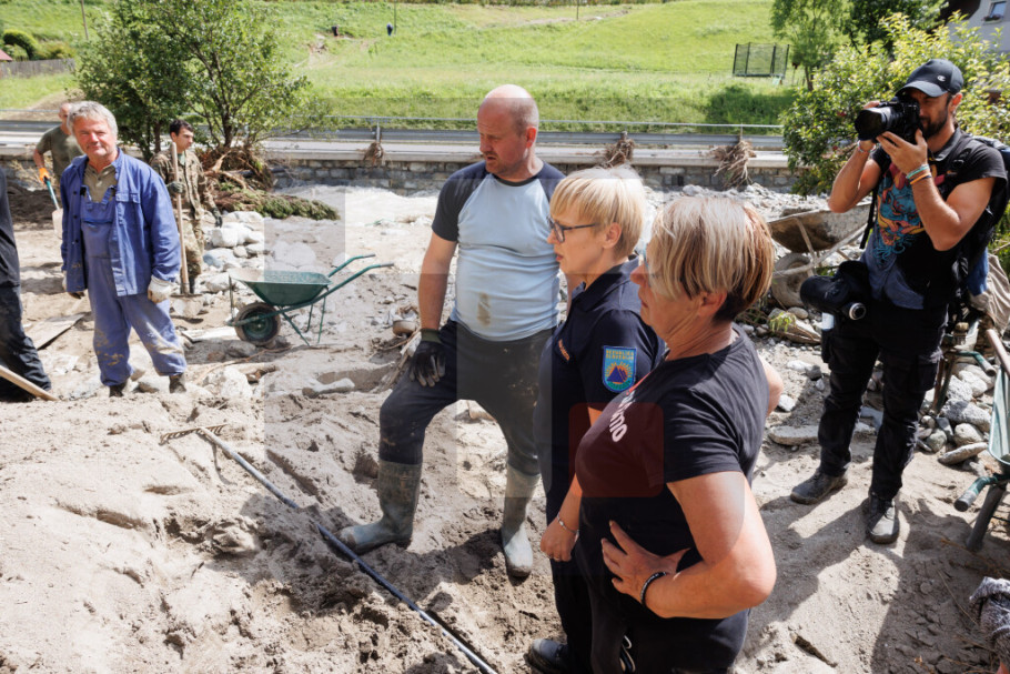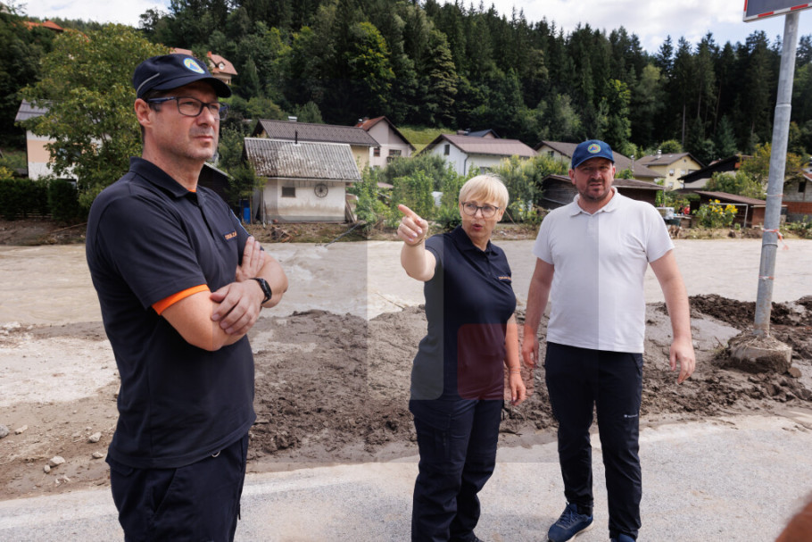 RAVNE NA KORUŠKEM - Predsednica Slovenije Nataša Pirc-Musar posetila je danas najpogođenija područja regiona Koruške na severu Slovenije i pohvalila je rad svih ljudi koji su uključeni u akciju sanacije posledica poplava.