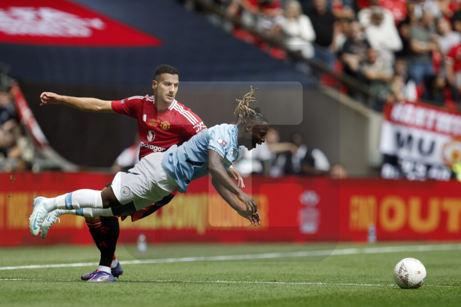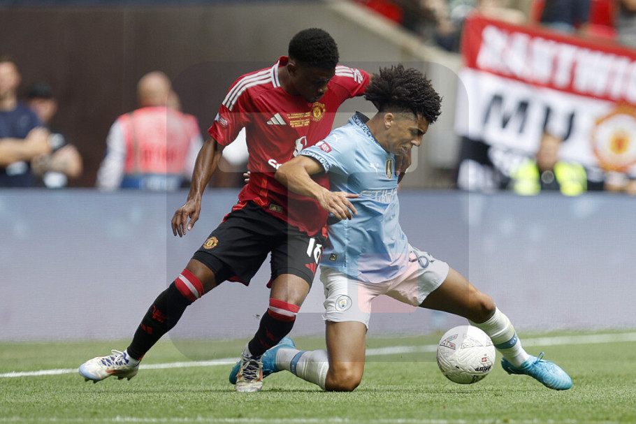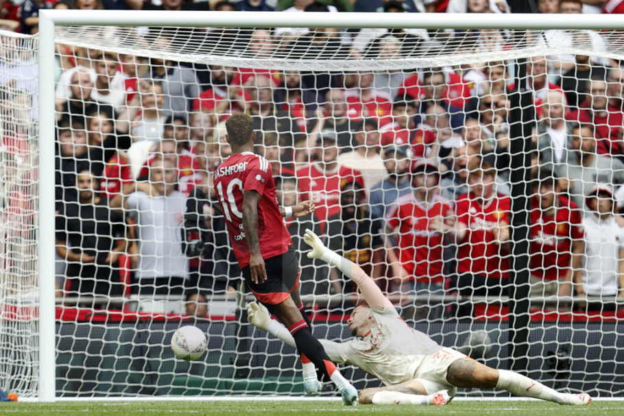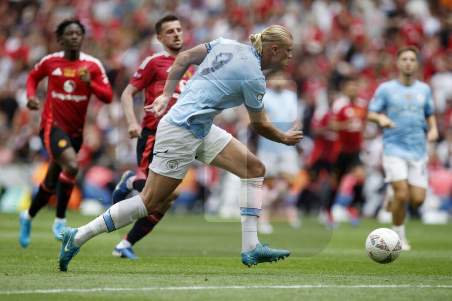 Osvajač prošlosezonskog FA Kupa Mančester Junajted je na londonskom Vembliju mogao da povede u 75. minutu, ali stoodstotnu šansu nije iskoristio Markus Rašford, pogodio je stativu u situaciji jedan na jedan sa golmanom "građana". Popularni "crveni đavoli" su ipak poveli u 82. minutu, strelac je bio rezervista Alehandro Garnačo, posle soloprodora je poslao loptu u gol prizemnim udarcem sa ivice šesnaesterca.