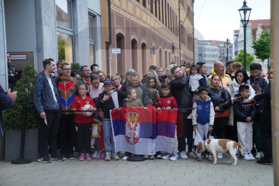 FudbalerI Srbije stigli u Augsburg - bazu tokom Evropskog prvenstva, ovacije navijača ispred hotela