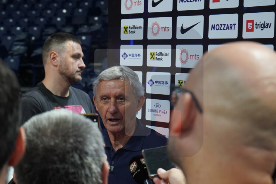 Srbija u četvrtak od 20 časova igra protiv Slovenije u generalnoj probi za Evropsko prvenstvo koje počinje 27. avgusta. Okupljene novinare na treningu reprezentacije najviše je zanimalo kad će Pešić objaviti konačan spisak od 12 igrača i kakva je situacija sa Vasilijem Micićem.