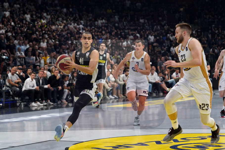 Studentski centar je bolje ušao u meč i već u trećem minutu poveo 8:2. Partizan je potom zaigrao angažovanije, a "crno-beli" su u sedmom minutu trojkom Nanelija stigli do prvog vođstva, 14:13. Partizan je zahvaljujući trojkama Nanelija u devetom minuta stekao prednost od osam poena (25:17). "Crno-beli" su prvu četvrtinu rešili u svoju korist rezultatom 27:21. Prednost domaćeg tima rasla je iz minuta u minut, a Partizan je prvo poluvreme dobio rezultatom 57:38.