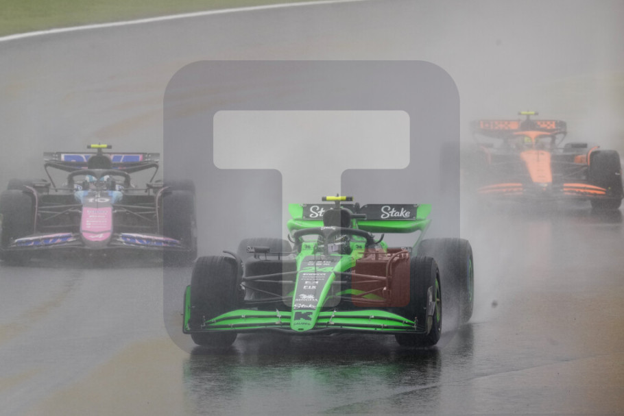 Trka na stazi Interlagos u Sao Paolu počela je po kiši, koja je u trenutku prekida počela jače da pada.