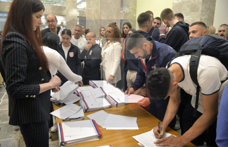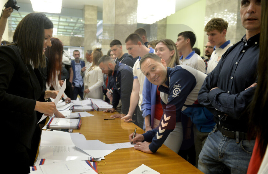 Svečano potpisivanje ugovora između Ministarstva sporta i sportista održano je u "Palati Srbija" čiji je domaćin bio ministar sporta u Vladi Republike Srbije Zoran Gajić. Pored više od 400 sportista ovom činu prisustvovali su ministarka za brigu o porodici i demografiju Darija Kisić i ministar bez portfelja Novica Tončev, predsednici i predstavnici sportskih saveza naše zemlje, visoki zvaničnici sporta u Srbiji, kao i proslavljeni sportisti, treneri, selektori reprezentacija.