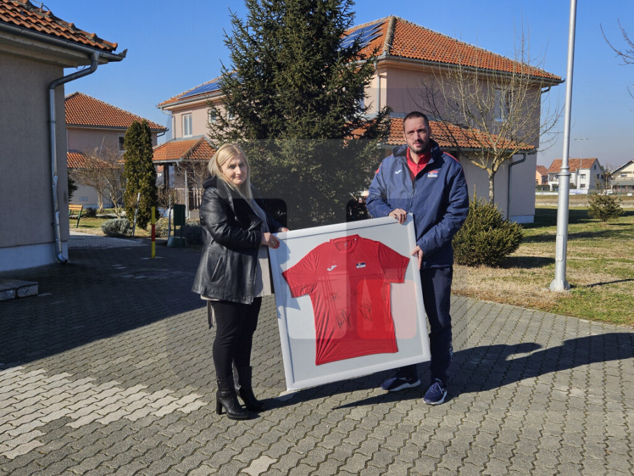 On je potom predao dres sa potpisima reprezentativaca Srbije direktorki SOS Dečijeg sela u Kraljevu Biljani Zorić Dimić.