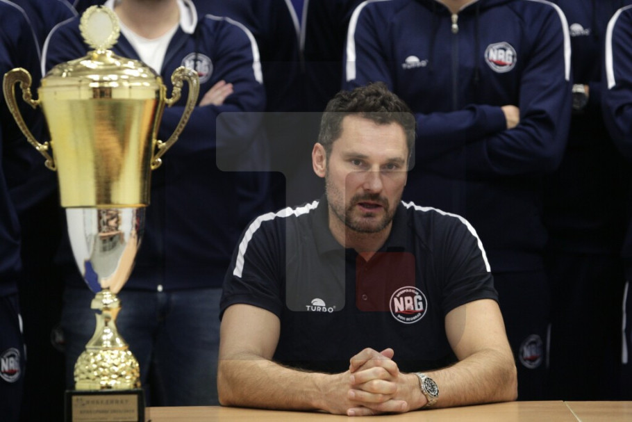 Trener Novog Beograda Živko Gocić stao je iza svake izgovorene reči kapitena Filipa Filipovića. On se zahvalio igračima i svojim saradnicima u stručnom štabu, a čestitao je i svima u klubu na osvojenom peharu.