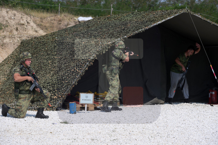 "Kolektivna obuka realizuje se na poligonu Borovac i u bazi 'Jug'. Kruna kolektivne obuke je realizacija vežbe "Srpski štit" gde se vrši provera osposobljenosti Voda za zaštitu snaga u obavljanju zadataka u uslovima približnim onim kojima se sprovodi mirovna operacija", naveo je Marković.