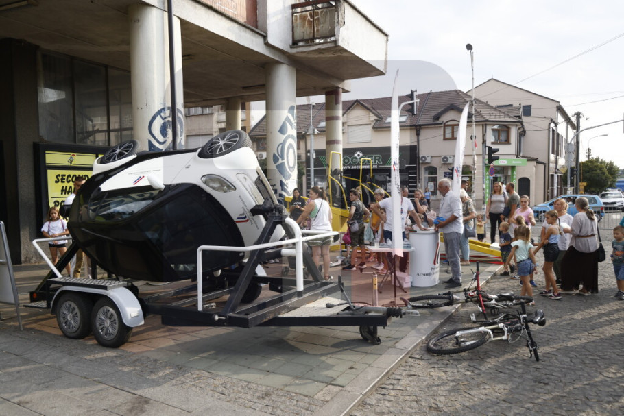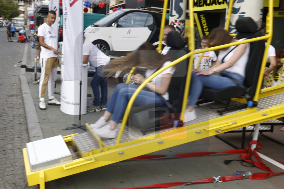 "Važno je da smanjimo broj posledica saobraćajnih nezgoda. Danas sa Mladenovčanima i njihovim gostima razgovaramo o ovoj temi i na centralnom delu našeg štanda im, uz pomoć simulatora prevrtanja i čeonog sudara, objašnjavamo kolika je važnost vezivanja zaštitnog pojasa", rekao je Kovač.