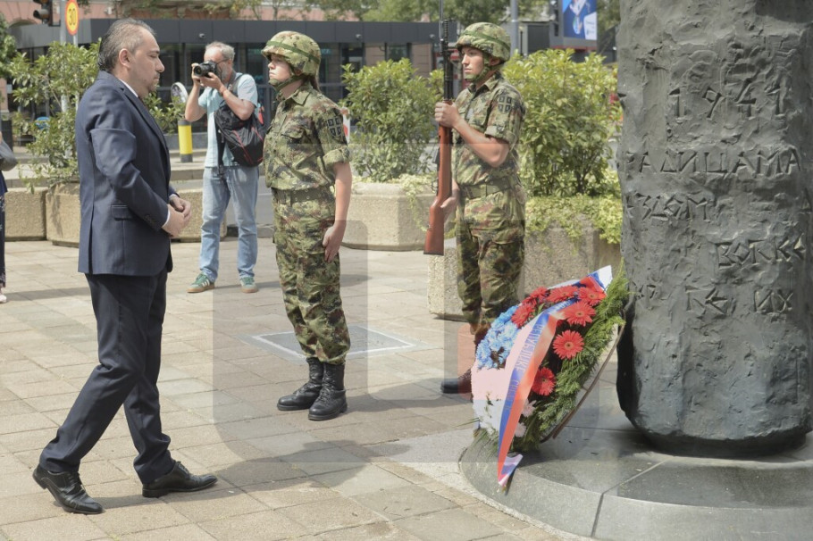 BEOGRAD - Državni sekretar Ministarstva za rad,vzapošljavanje, boračka i socijalna pitanja Ninoslav Jovanović predvodio je danas na Terazijama državnu ceremoniju polaganja venaca i odavanja počasti kojom je obeležena 83. godišnjica od zločina koji su počinile nemačke okupacione snage 1941. godine.