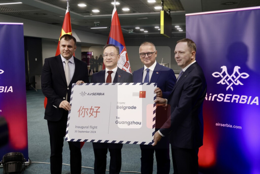 Na beogradskom aerodromu Nikola Tesla sinoć je organizovan svečani ispraćaj za prvi let Er Srbije za Guangdžou, sa kojeg je poručeno da ovaj let predstavlja još jedan doprinos čeličnom prijateljstvu dve zemlje.