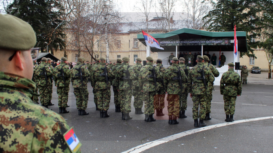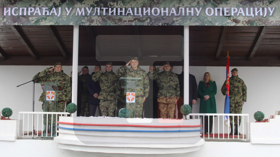 VRANJE - Vojna svečanost povodom ispraćaja novog kontingenta Vojske Srbije u mirovnu operaciju Ujedinjenih nacija u Libanu održana je danas u kasarni ''Prvi pešadijski puk knjaza Miloša Velikog'' u Vranju, saopštilo je Ministarstvo odbrane.