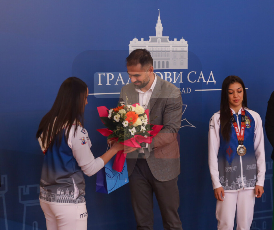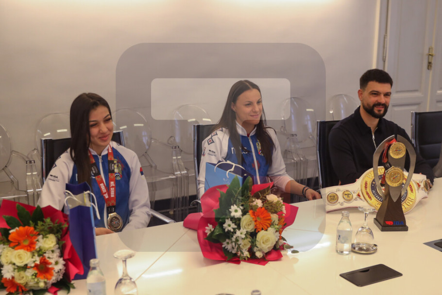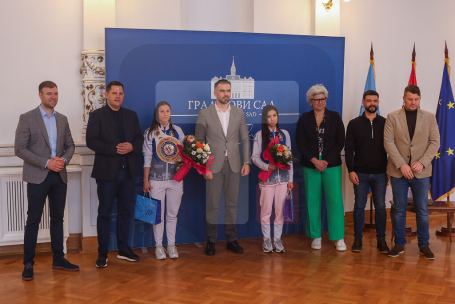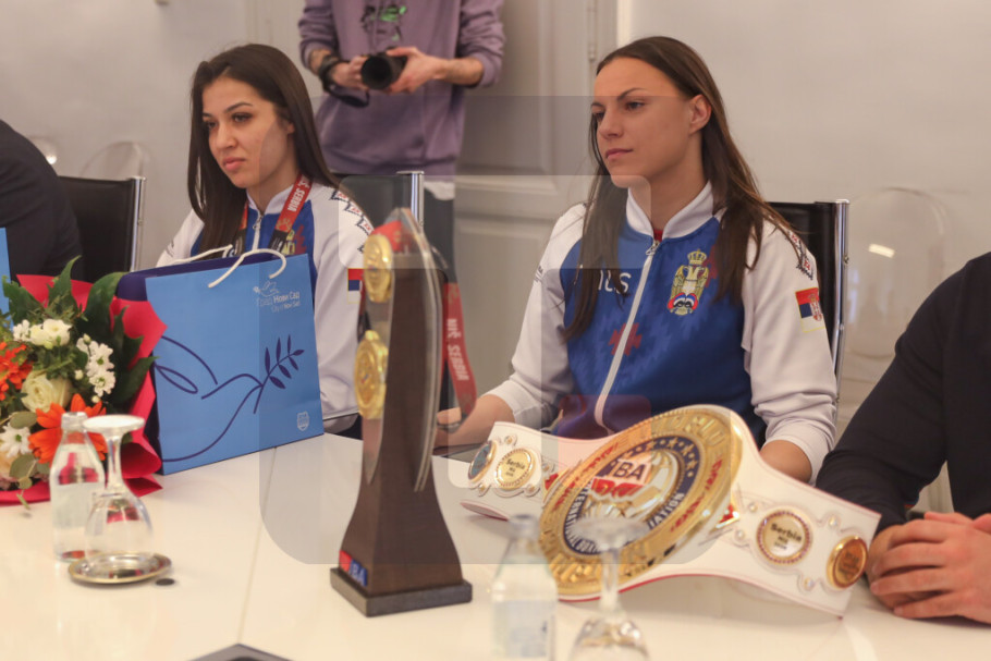 NOVI SAD - Gradonačelnik Novog Sada Žarko Mićin ugostio je danas u Gradskoj kući reprezentativke Srbije u boksu Anđelu Branković i Draganu Jovanović, koje su osvojile medalje na Svetskom prvenstvu, koje je od 8. do 16. marta održano u Nišu.