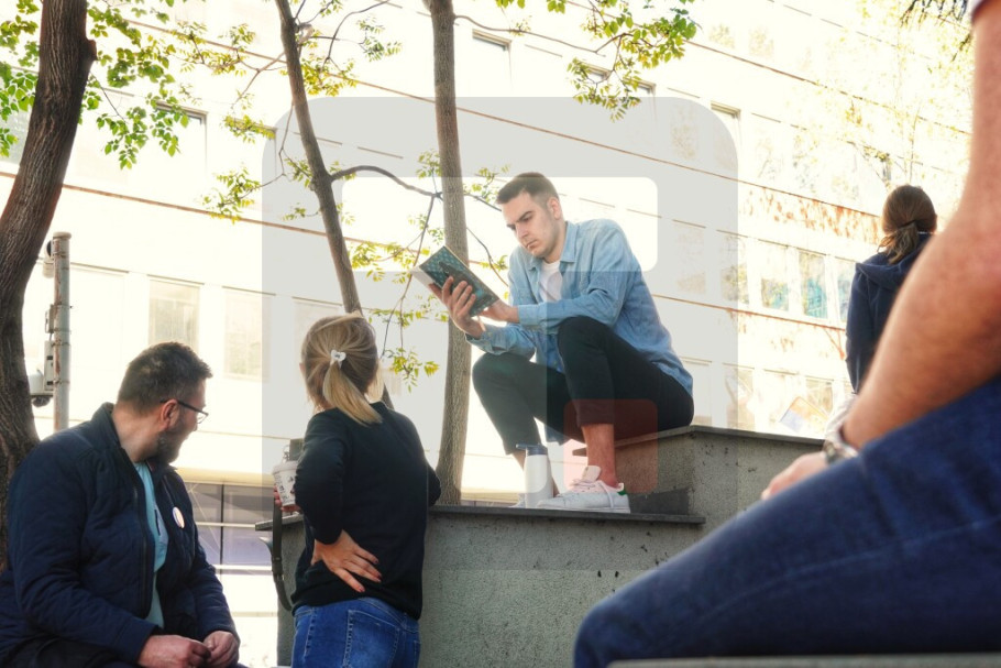 Studenti u blokadi stoje na ulici i šetaju, uprkos kiši koja je padala tokom noći i jutra, a kako su najavili zbog Velikog petka danas neće praviti buku pištaljkama i vuvuzelama.