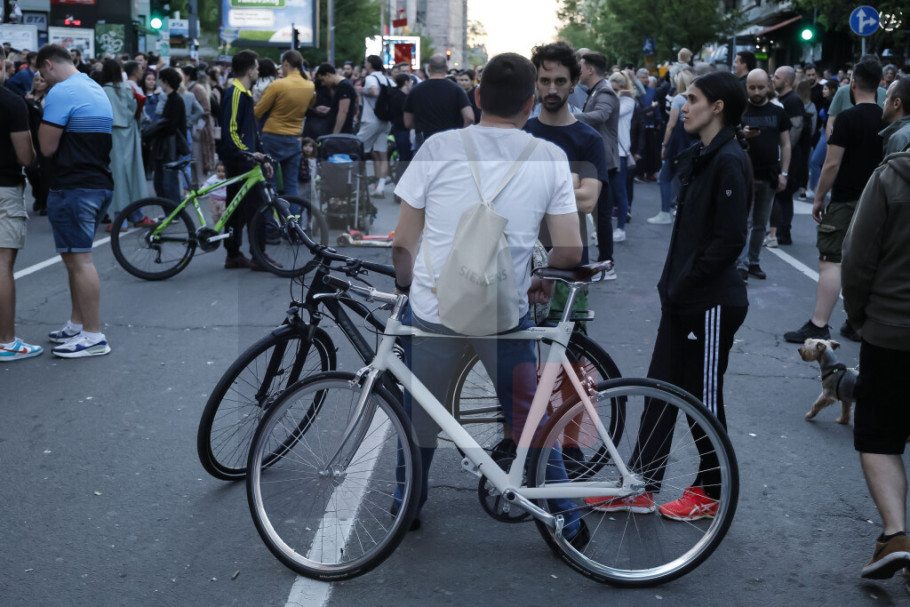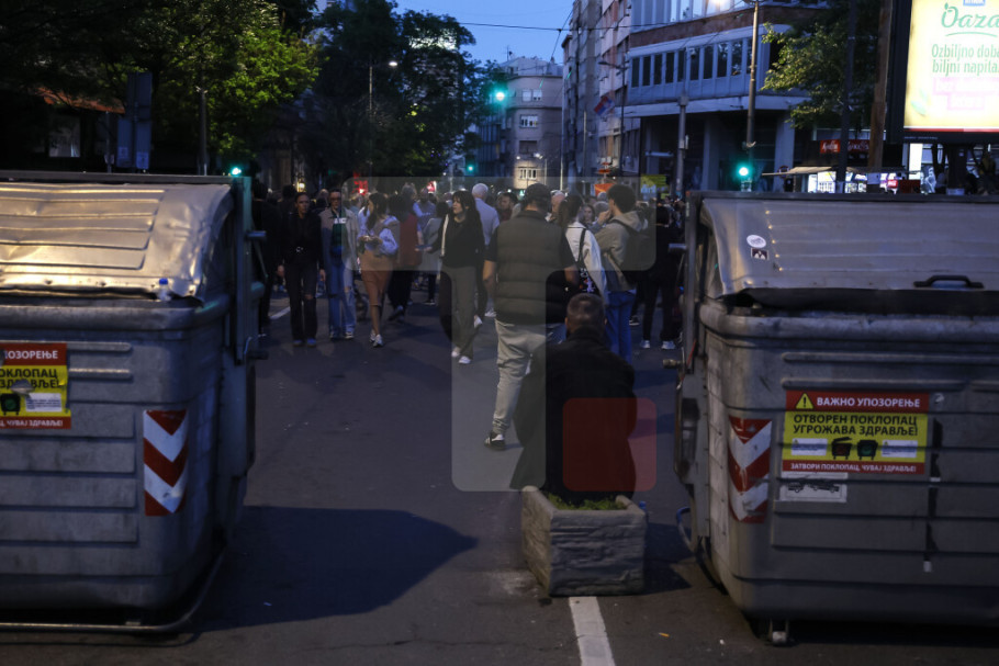 Zbog blokada su za saobraćaj zatvoreni deo Takovske ulice, Ilije Garašanina i Majora Ilića. Studenti u blokadi uglavnom stoje na ulici ili šetaju, a zbog Velikog petka danas nisu pravili buku pištaljkama i vuvuzelama, a nisu se čuli ni motori bajkera, kojih je večeras u znatno manjem broju nego prethodnih noći.
