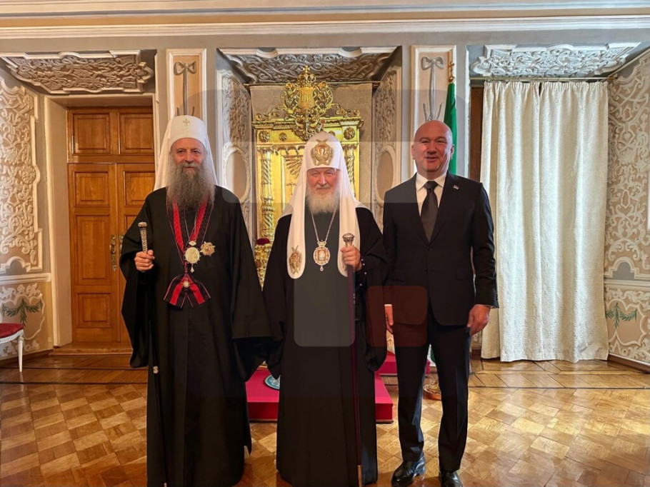 Liturgiju u duhovnom središtu Ruske pravoslavne crkve i jednoj od najznačajnijih svetinja ruskog naroda su predvodili patrijarh moskovski i sve Rusije Kiril i patrijarh srpski Porfirije, saopšteno je iz kabineta ministra Popovića.