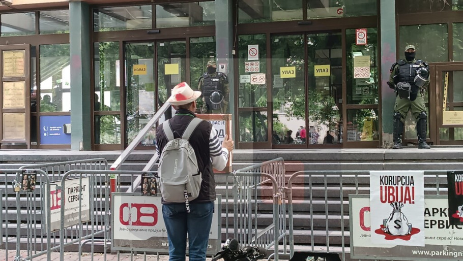 NOVI SAD - Manja grupa studenata u blokadi i pristalica opozicije i dalje blokira ulaze u zgradu Višeg suda u Novom Sadu i ne dozvoljava ulazak zaposlenima.