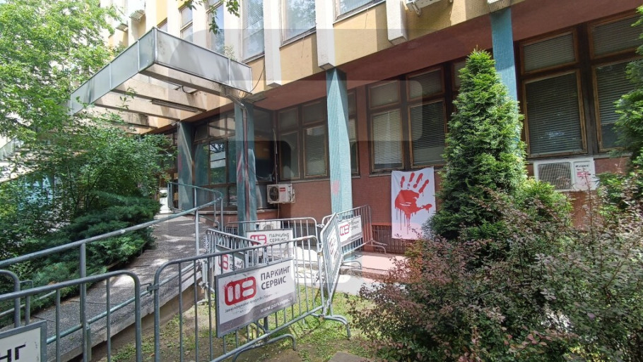 Pripadnici policije trenutno su raspoređeni na glavnom ulazu u zgradu.