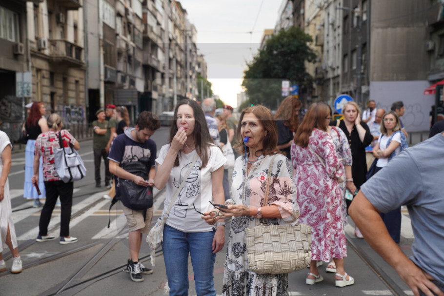 Mala grupa građana na poziv studenata Fakulteta dramskih umetnosti krenula je u protestnu šetnju od Bulevara umetnosti preko kružnog toka Ušće, a zatim i preko Brankovog mosta zbog čega je saobraćaj bio obustavljen.